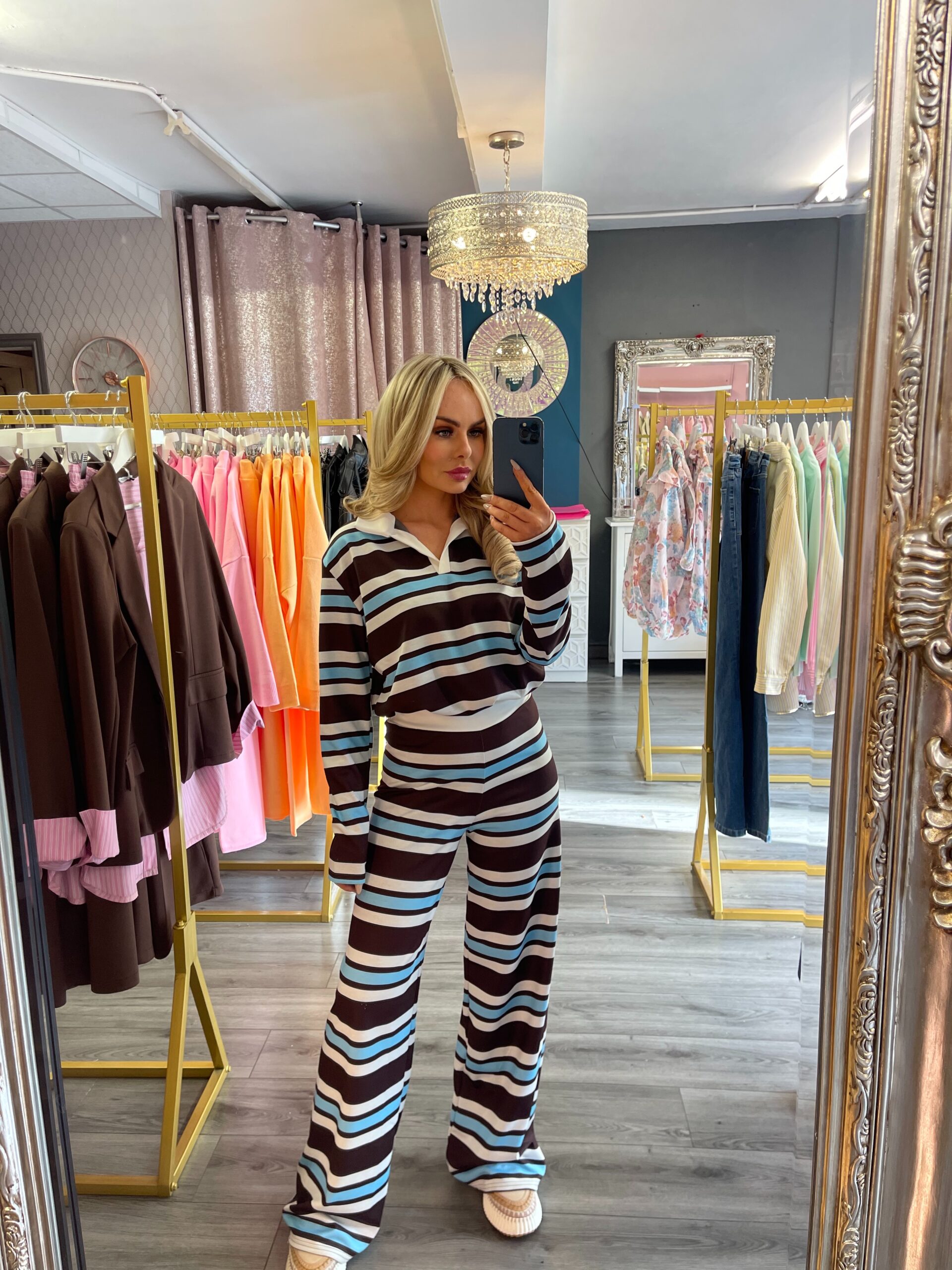Blue Brown Stripped lounge set