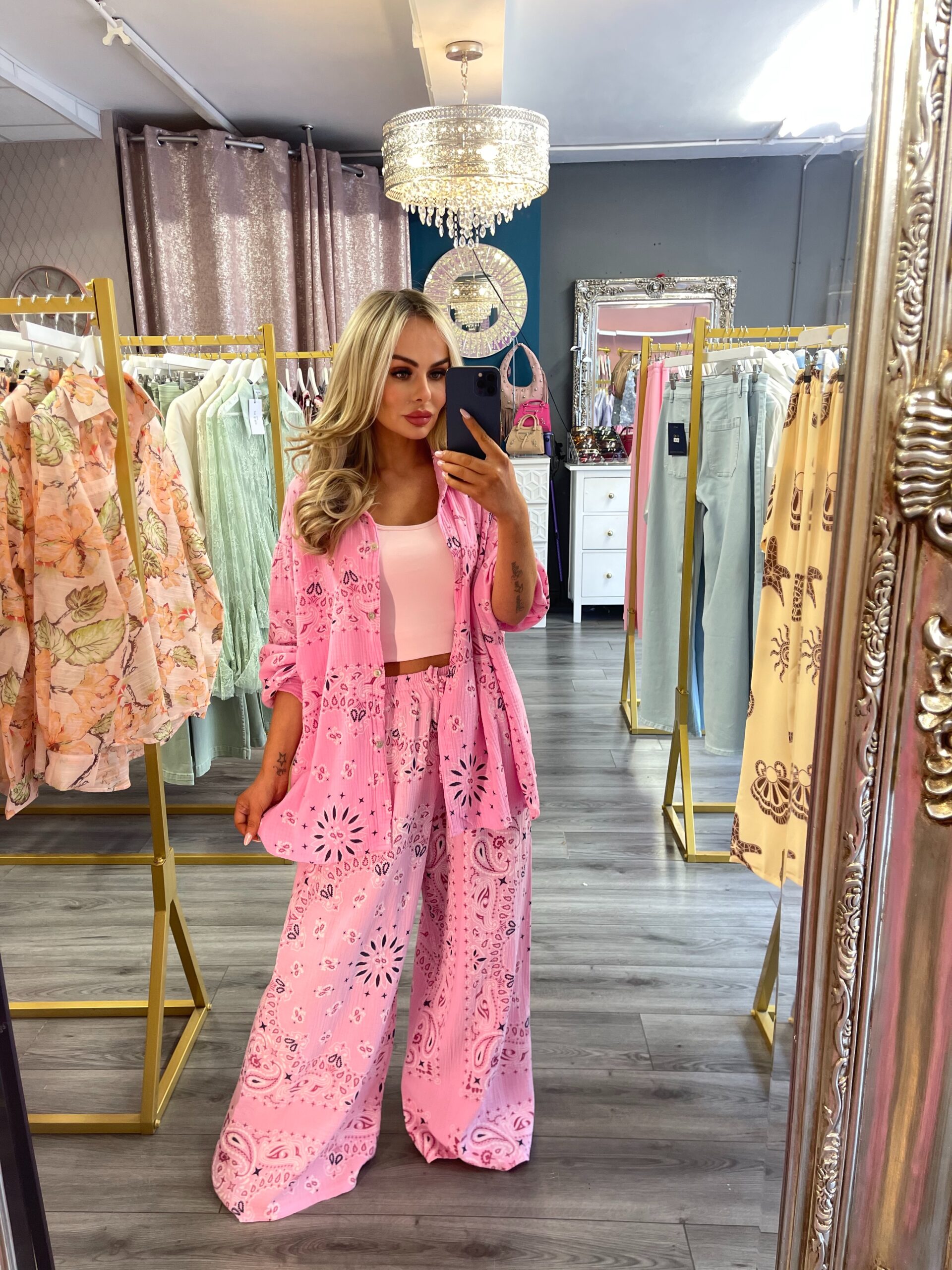 Pink pin stripped Skort set